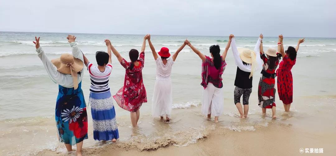 在阳光的照耀下,金黄色的沙滩上满是嬉戏的人们。湾主们有的拍照,有的戏水玩海,有的在捡贝壳...大家看起来是那么的轻松、愉快。