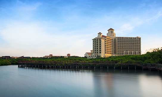 海南澄迈富力希尔顿逸林度假酒店坐落于海口后花园——有“世界长寿之乡”之称的海南省澄迈县,是国内第一家建在红树林湿地区域内的酒店,周围绿植、碧水环绕,环境清幽,能满足宾客远离尘世喧嚣,靠近自然,享惬意假期的需求。